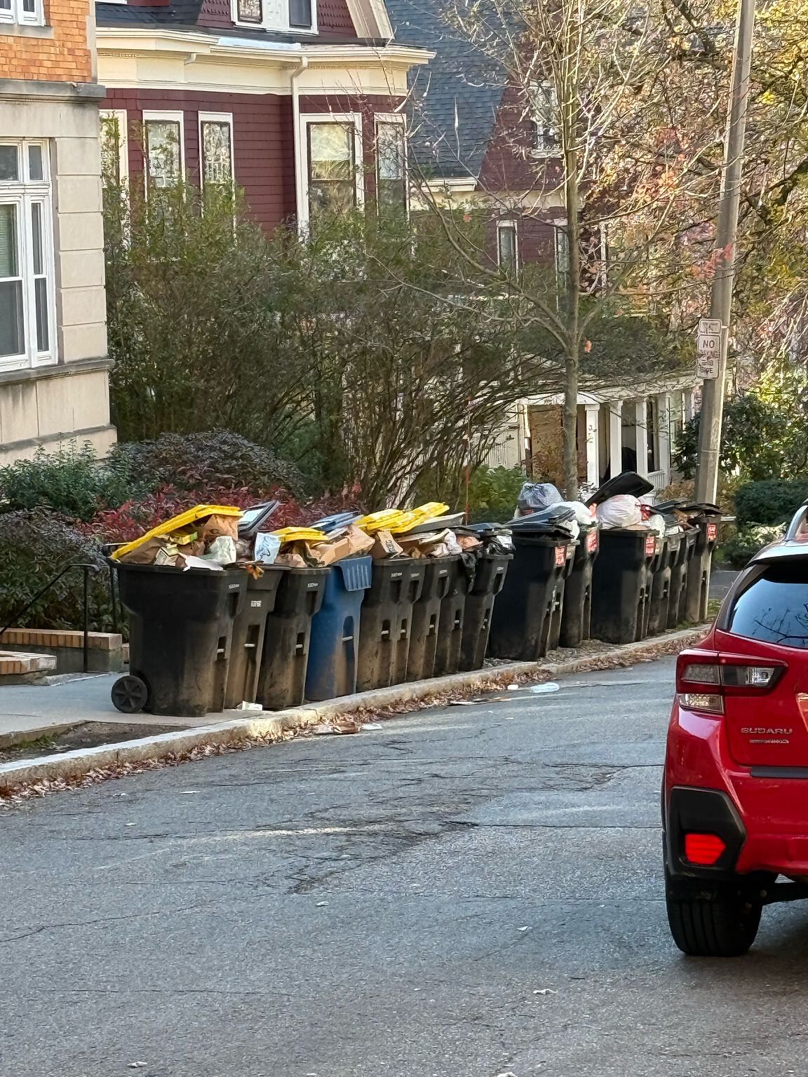 | Brookline, MA | open | Trash/Recycling | This is a weekly event. Overflowing garbage Not putting away garbage cans. | ![]() | about 20 hours ago |