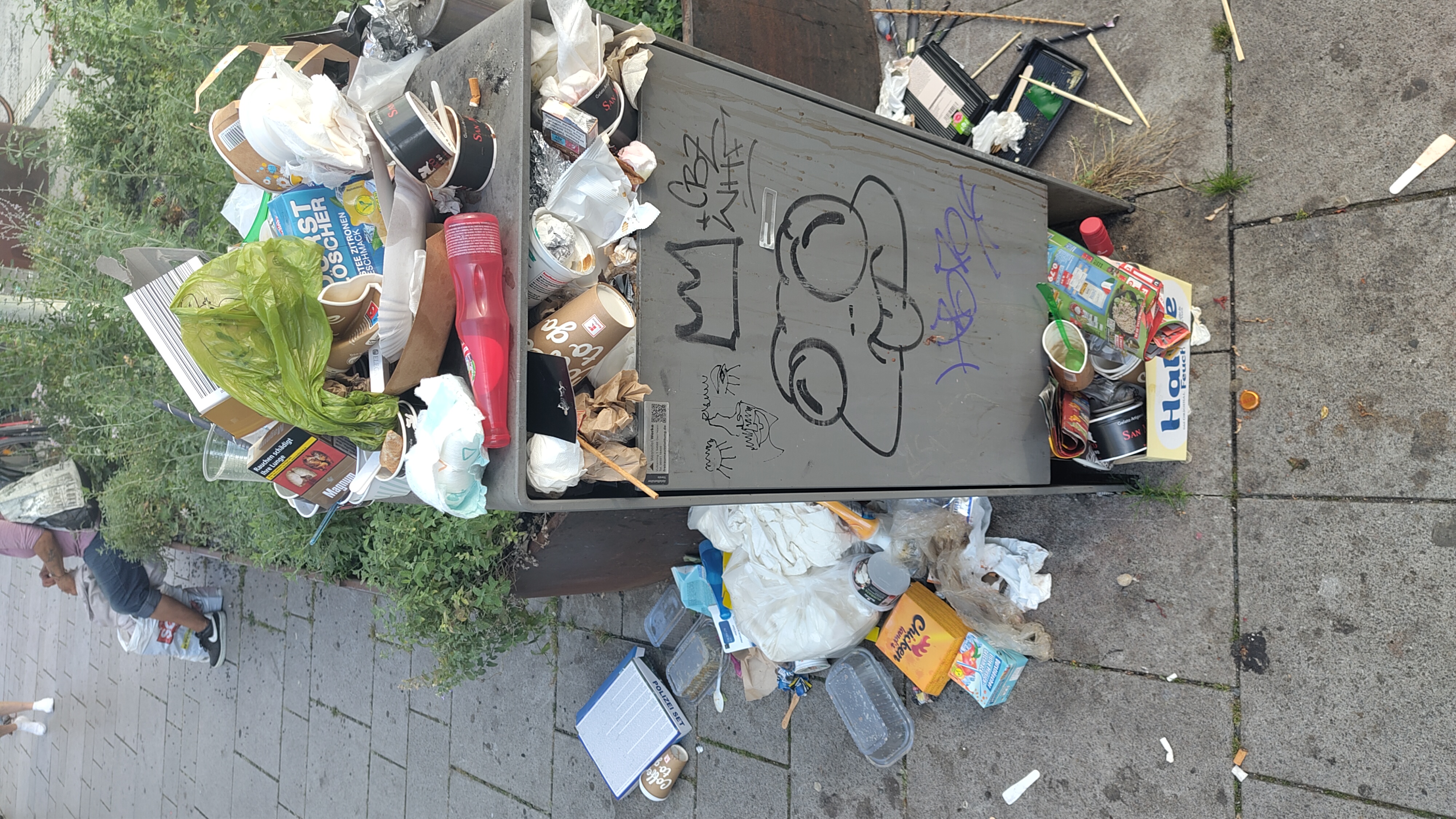 Die Fläche um diesen Mülleimer ist oft vermüllt, da der Mülleimer bereits voll ist. Regelmäßiges Problem welches nicht nur zu Stoßzeiten vorkommt. Möglich Lösung wäre die Installation eines weiteren Mülleimers. Vielen Dank!