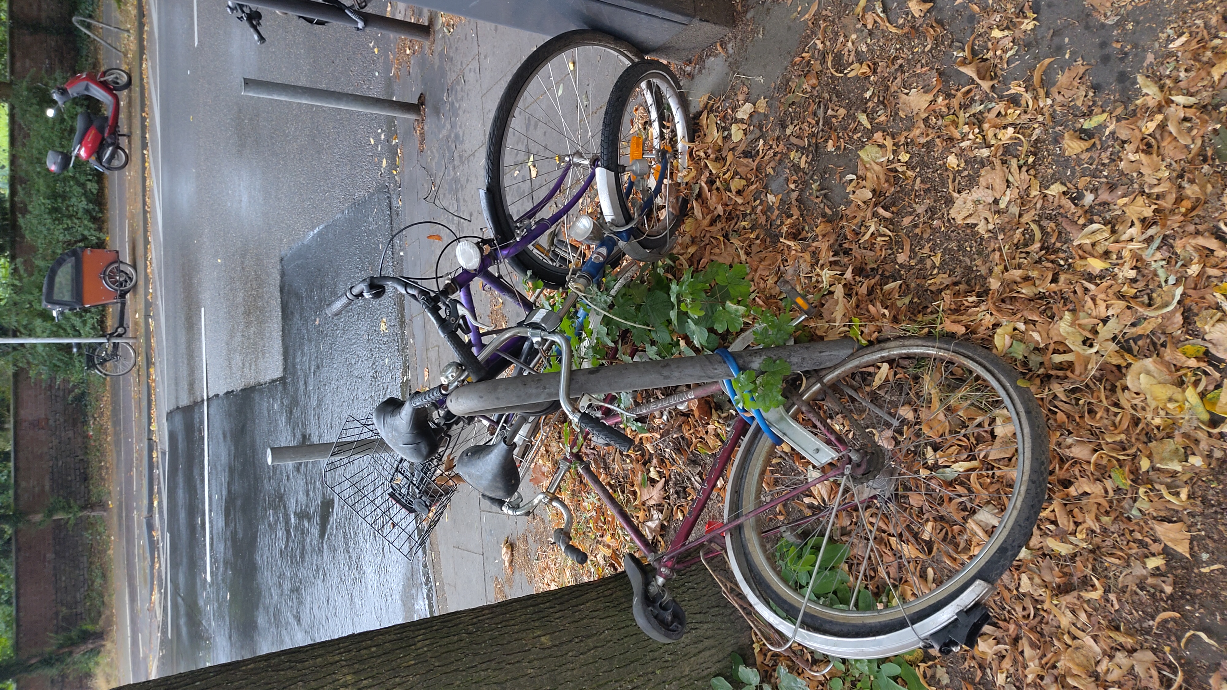 Köln / Cologne, Deutschland | open | Schrottfahrräder | Drei alte Fahrräder mit leeren Reifen die schon über ein Jahr an dem selben Fahrradständer stehen. |  | about 1 year ago |