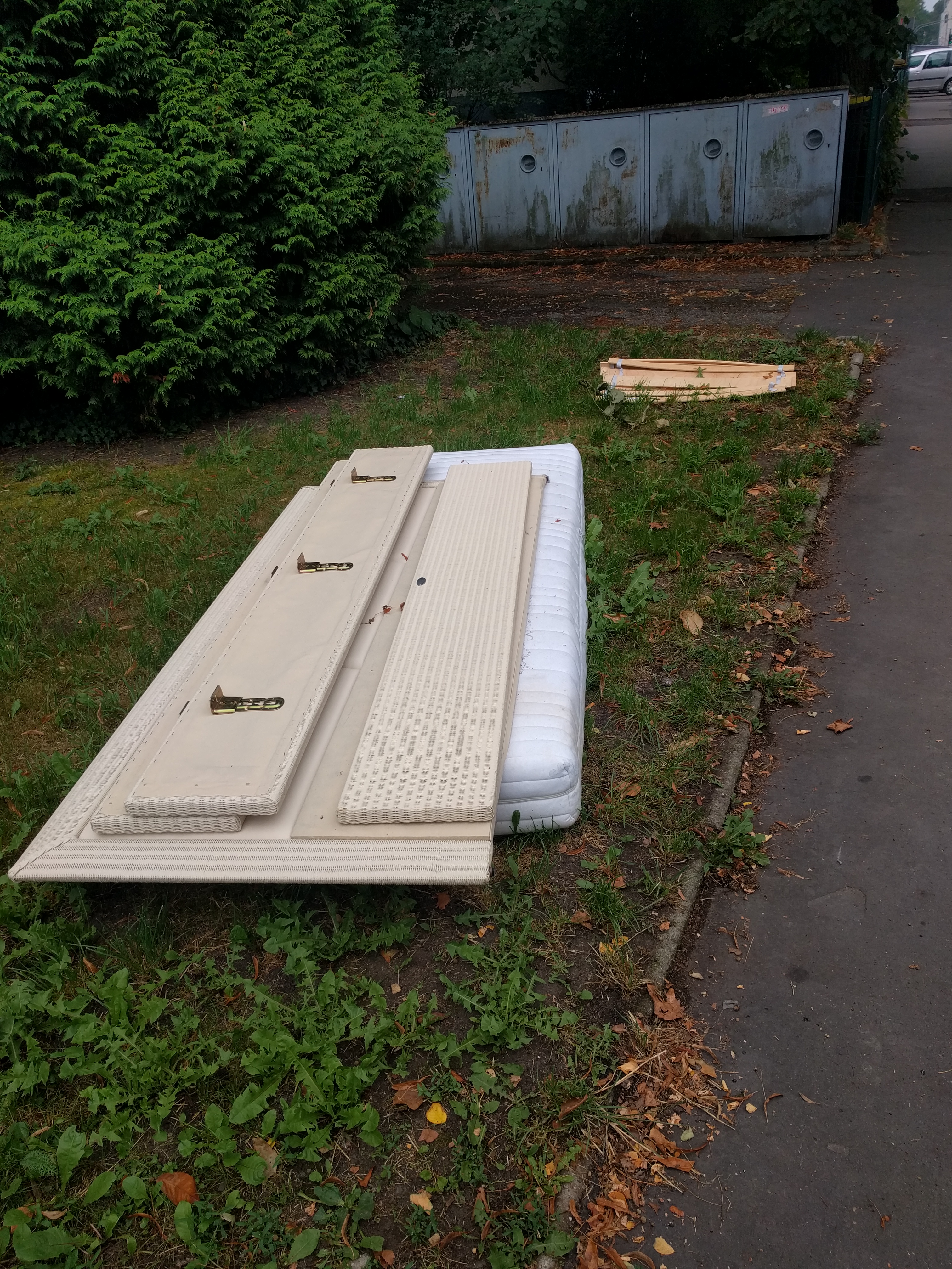 Köln / Cologne, Deutschland | open | Wilder Müll | Vor dem Haus liegt eine alte Matratze und Latten. |  | about 1 year ago |