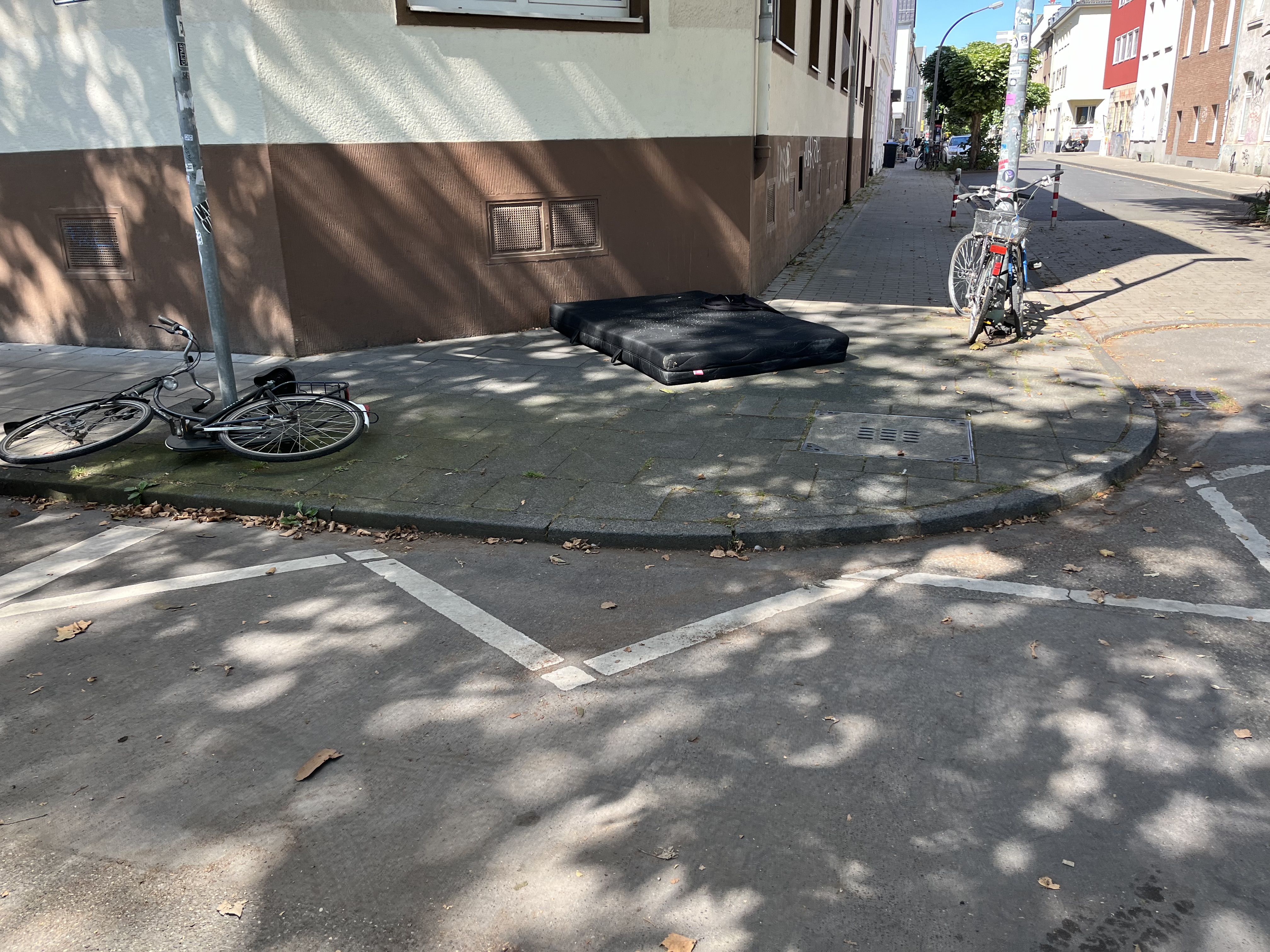 Köln / Cologne, Deutschland | open | Wilder Müll | An Hausecke liegt störend für Fußgänger große dunkle Matraze |  | about 1 year ago |