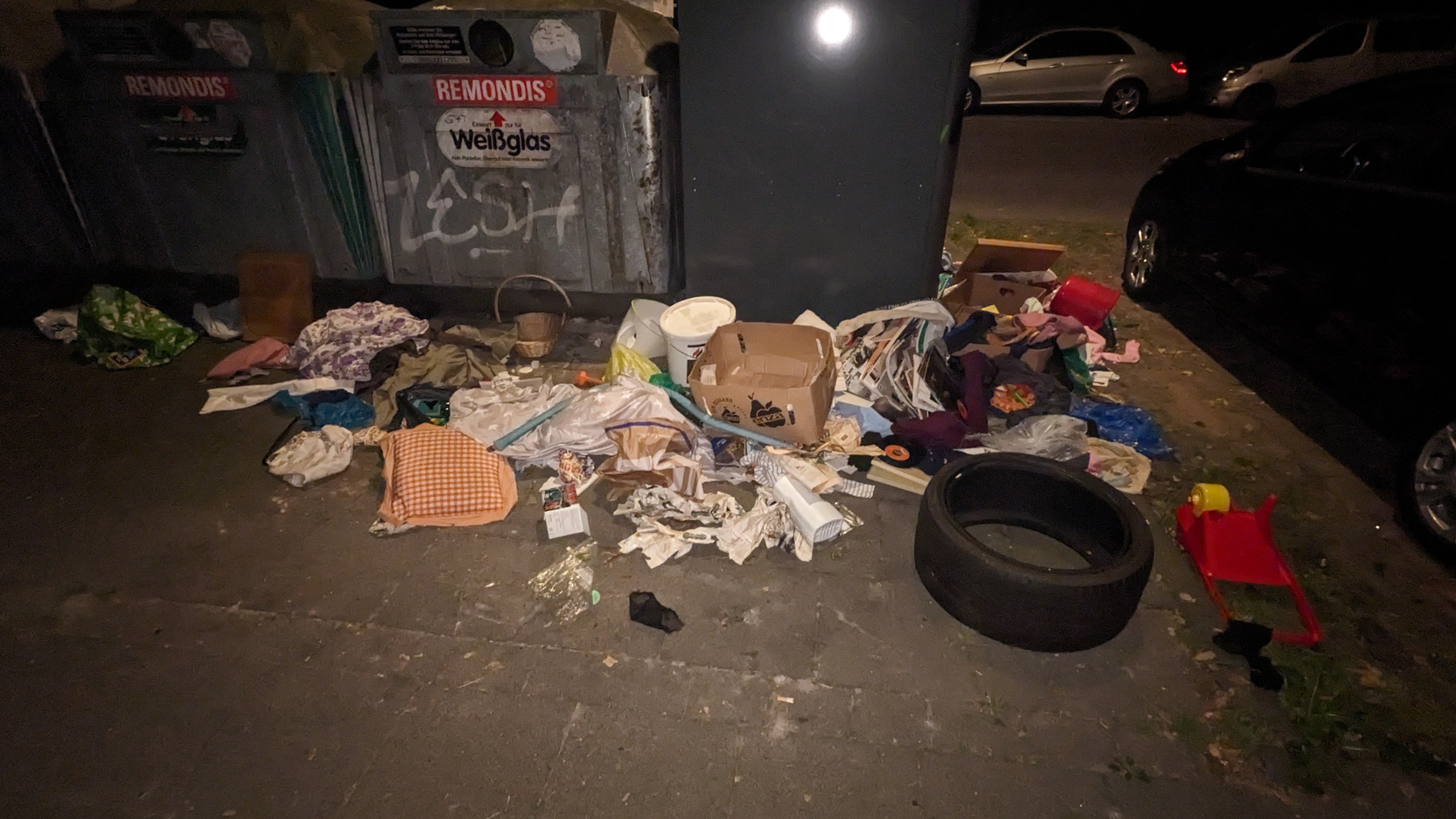 Köln / Cologne, Deutschland | open | Wilder Müll | An dem Altkleidercontainer sind wieder Unmengen an Müll. Sogar ein Autoreifen ist dabei. |  | about 1 year ago |