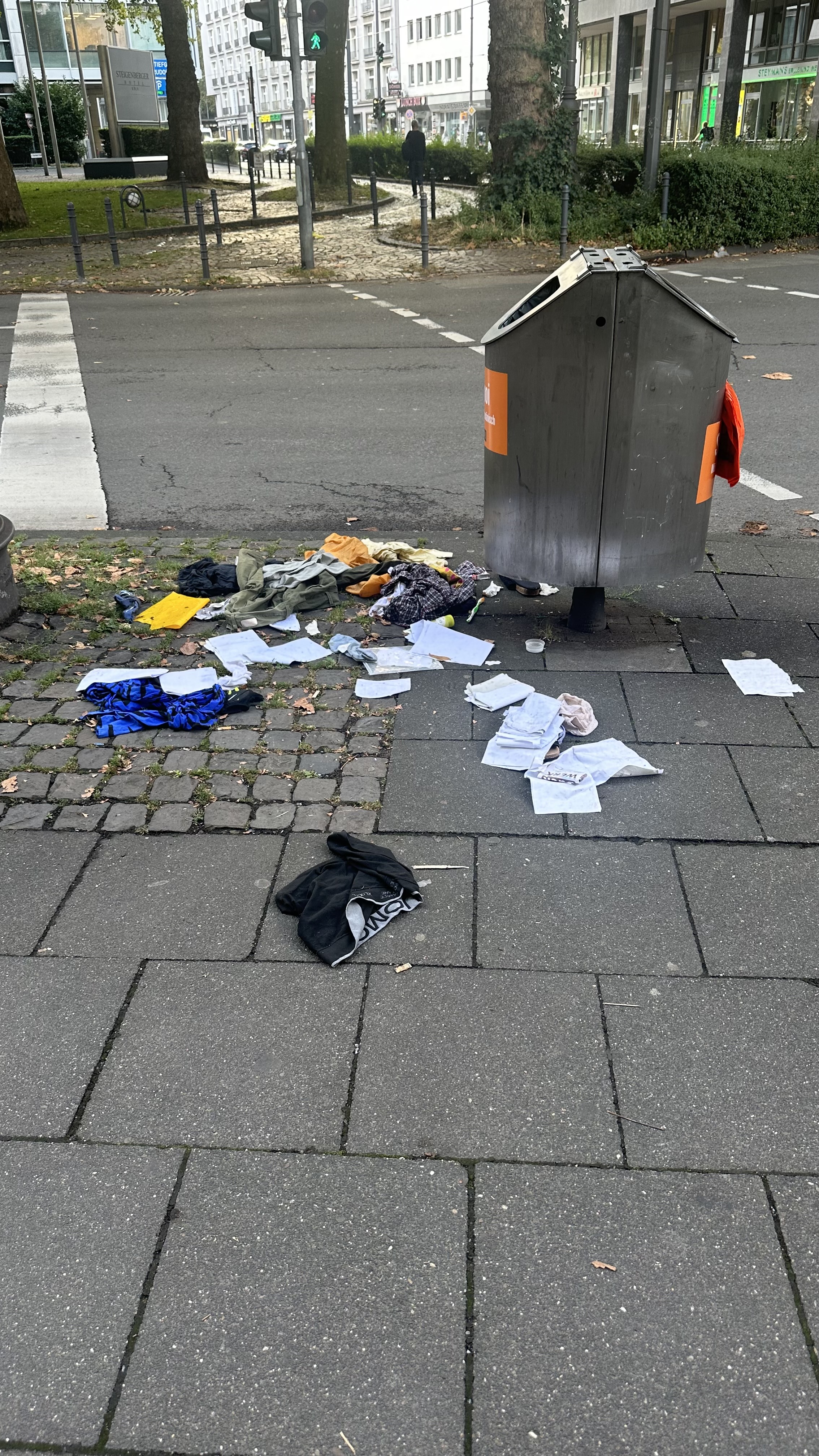Köln / Cologne, DeutschlandopenWilder MüllKlamotten und Papierkram auf dem Bürgersteigabout 1 year ago