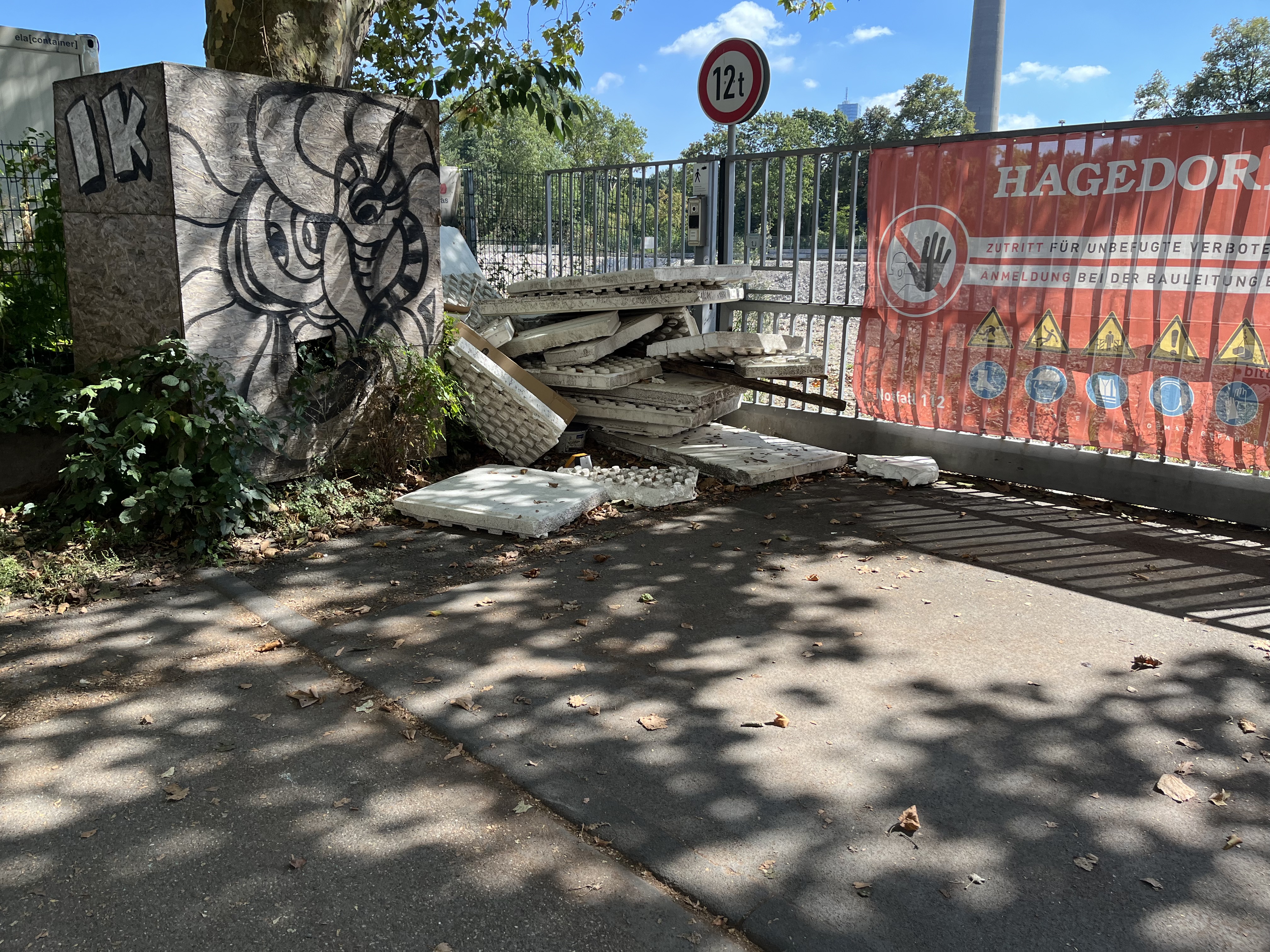 Köln / Cologne, Deutschland | open | Wilder Müll | Seit Monaten liegen vor rechtem Tor zum ehemaligen SIEMENS-Parkplatz links in der Ecke sehr große Styropor-Isolierbauplatten. Gehören eindeutig nicht zur Baustelle auf SIEMENS-Gelände. Fliegen bei Sturm immer herum - gefährlich. |  | about 1 year ago |
