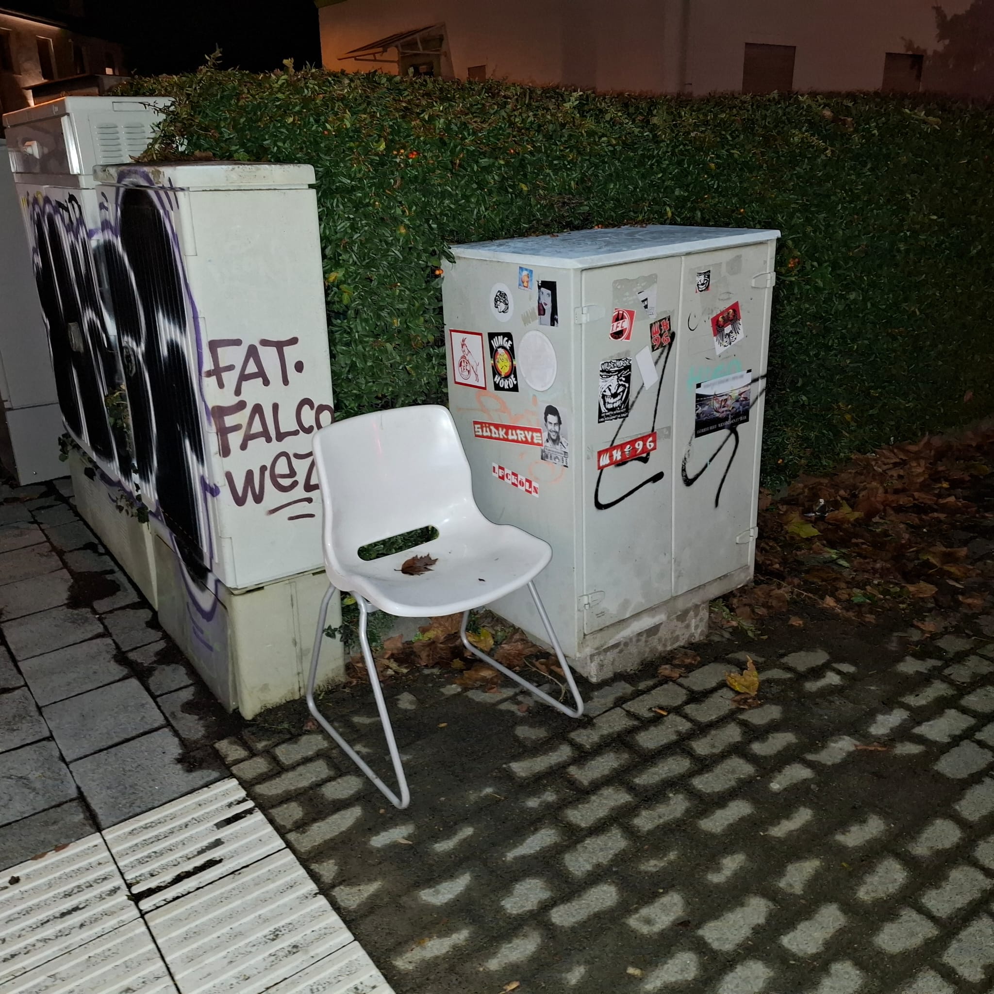 Köln / Cologne, Deutschland | open | Wilder Müll | Ein Stuhl wurde am Verteilerkasten entsorgt. An der Ecke Olpenerstraße / Kieskauler Weg vor dem Haus Olpenerstr. 441.