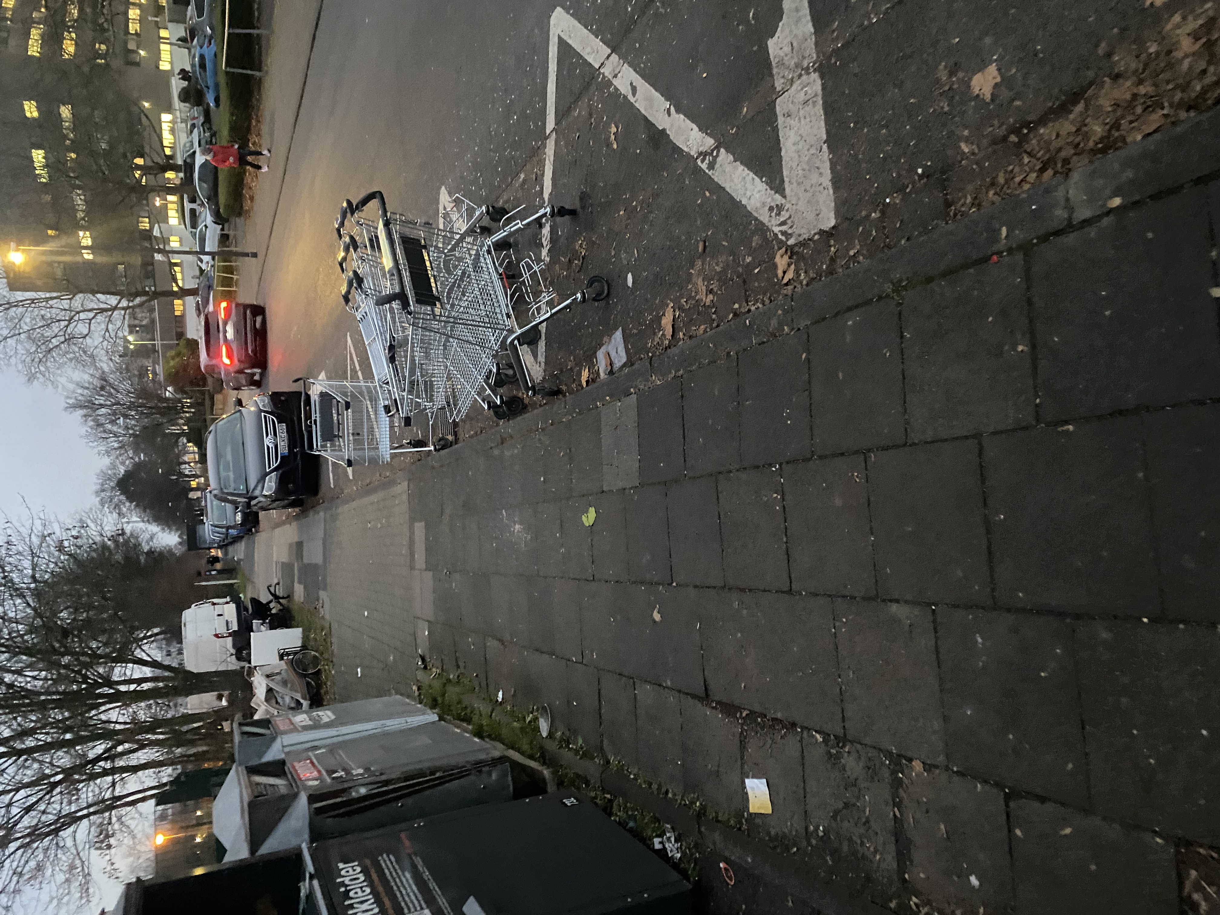 | Köln / Cologne, Deutschland | open | Wilder Müll | Die Bewohner der Unterkunft haben mal wieder Einkaufswagen mitgenommen und blockieren hier den Weg.