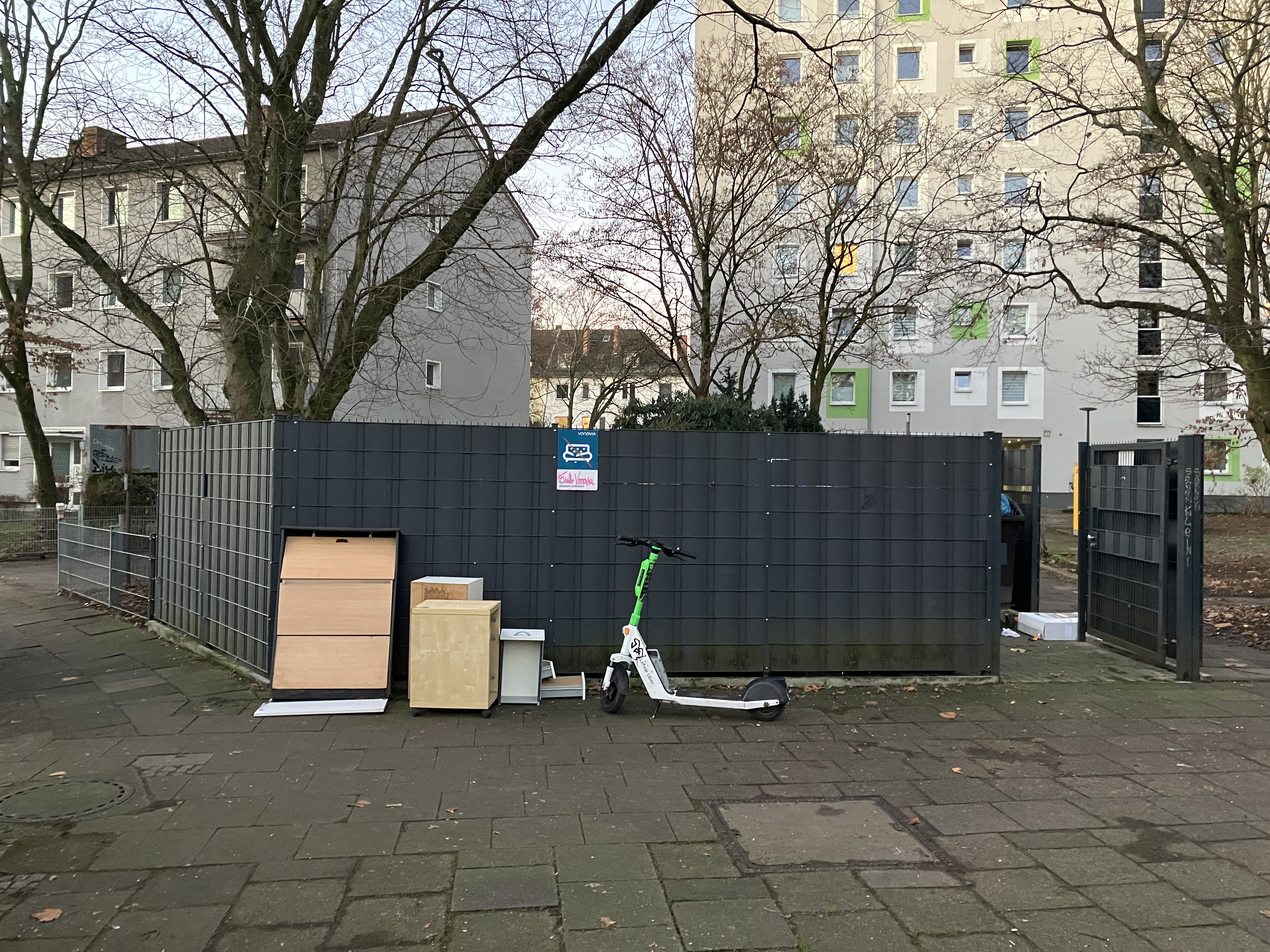 Köln / Cologne, Deutschland | open | Wilder Müll | Sperrmüll (vor Tagen, mindestens seit 23. Dezember, erst ein Schuhschrank. Seit spätestens Freitag, 27.12 weitere Schühschränkchen, Schubkästen auf Gehweg vor Müllplatz (mit Hinweisschild „Sperrmüll abstellen verboten“) von VONOVIA Grundstück, Hausnummer 21. Auf VONOVIA Grundstück, Hausnummer 21 liegt circa 1 bis 3 Kubikmeter Sperrmüll. Somit anscheinend von VONOVIA Wohnhaus Hausnummer 21. Eventuell auch von Wohnhaus, Hausnummer 27… |  | 10 months ago |