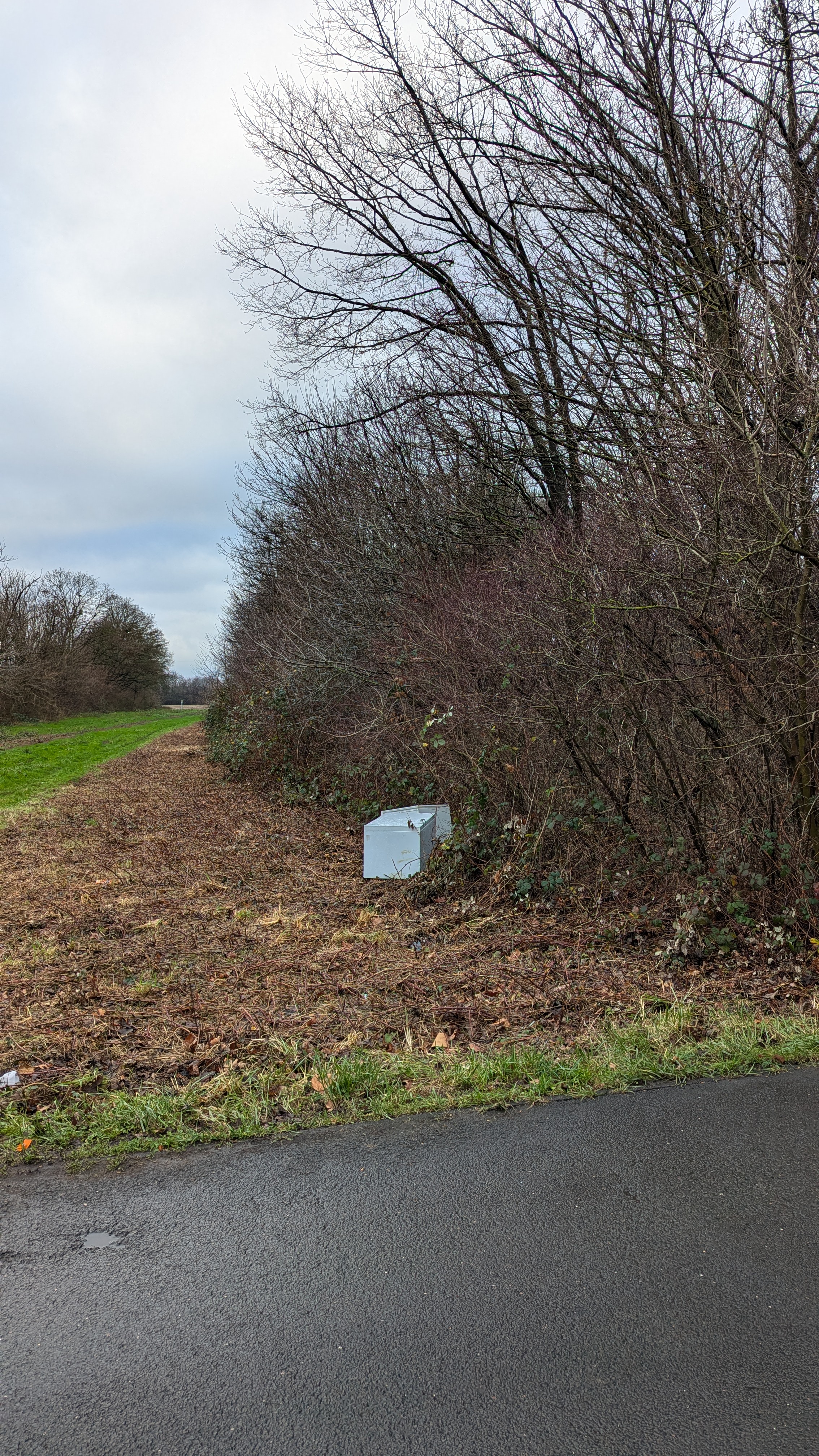 Köln / Cologne, DeutschlandopenWilder MüllIm Gebüsch, vor der Blücherstr. 10, 50733 Köln, wurde ein großes, weißes rechteckiges Teil abgeladen 11 months ago
