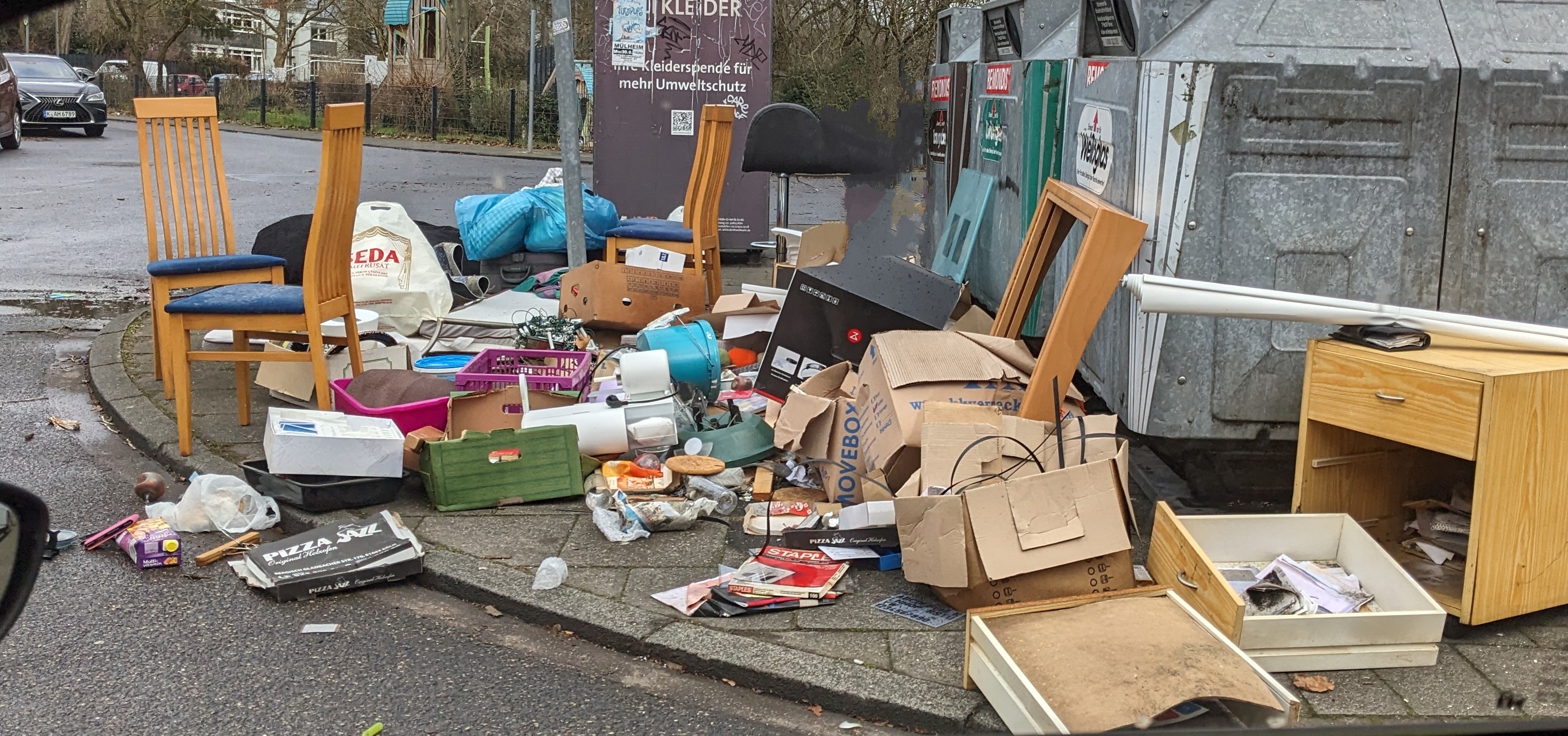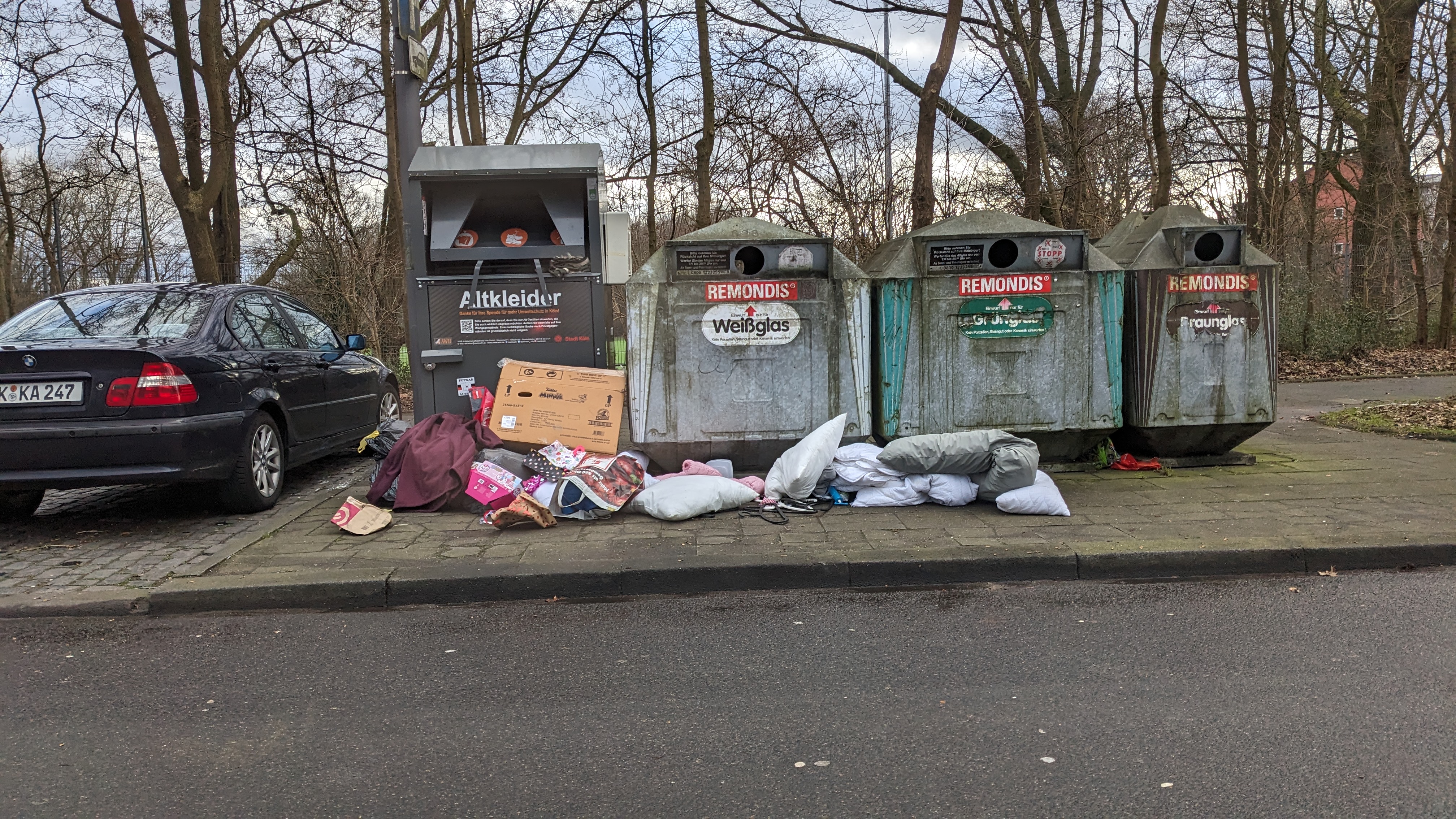 | Köln / Cologne, Deutschland | open | Wilder Müll | Leider wieder der gewohnte wilde Müll am Altkleidercontainer an der Wuppertaler Str. |  | 11 months ago |