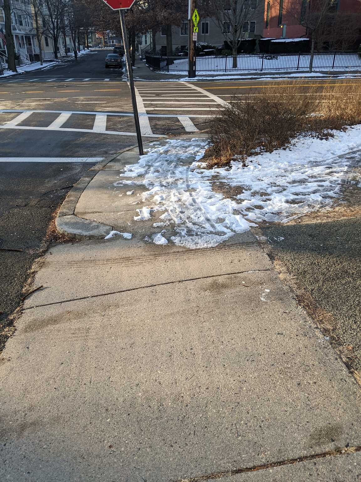 | Brookline, MA | open | Unshoveled/Icy Sidewalk | NBD just a big patch of ice covering the sidewalk because they couldn't shovel or salt. |  | 11 months ago |