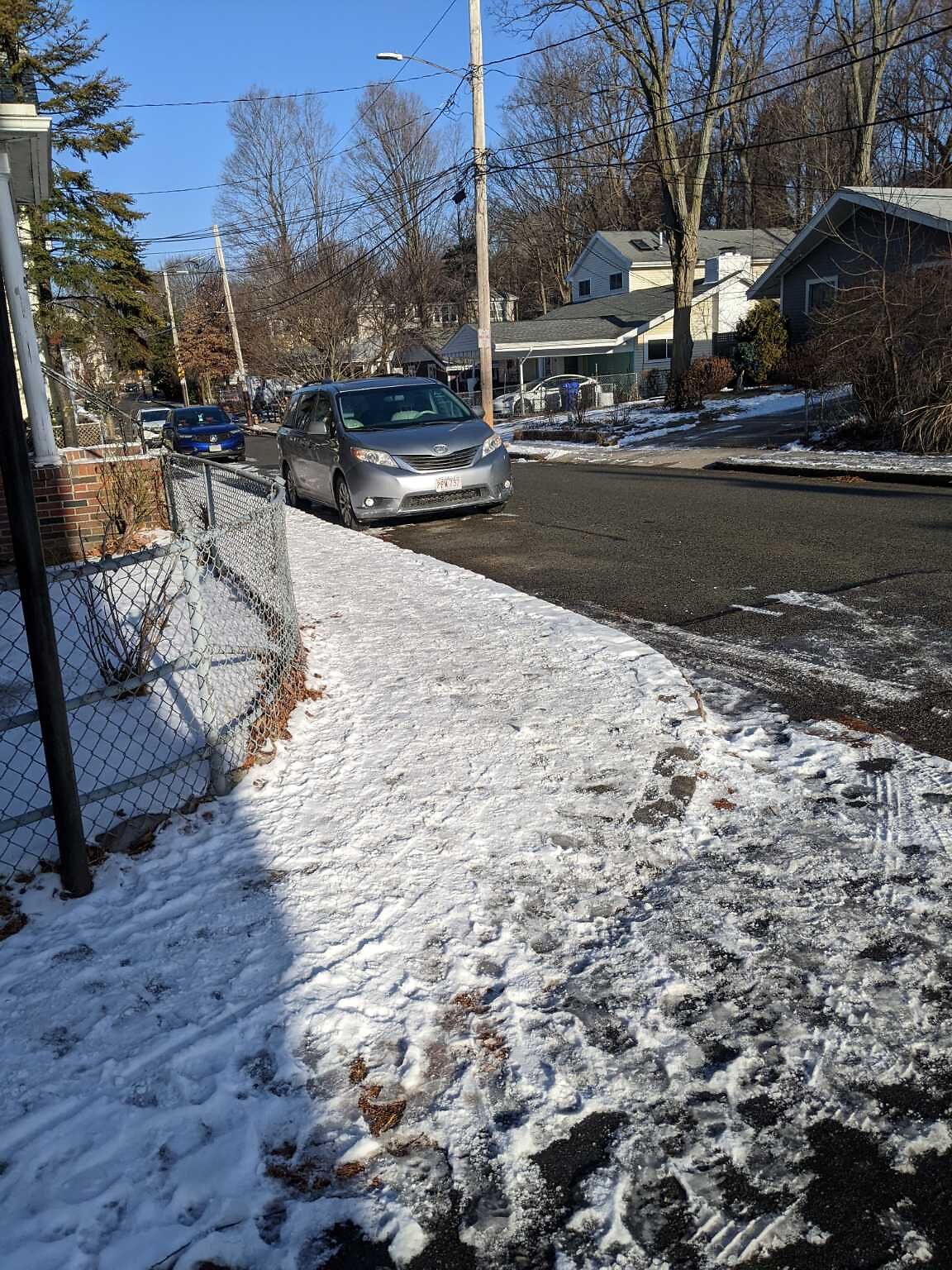 | Brookline, MA | open | Unshoveled/Icy Sidewalk | Unshoveled sidewalk at Robinson playground. I paid my taxes for my Whiskey Point home to Brookline last I looked. |  | 11 months ago |