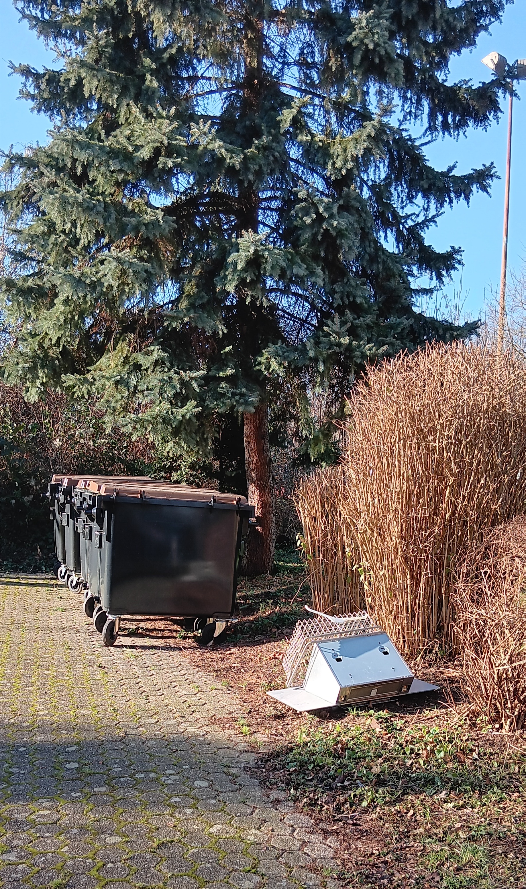 Bonn, Deutschland | open | Wilde Müllkippe | Da hat einer n Fahrradständer mit Werbung hinter den Verteiler geschmissen. |  | 8 months ago |