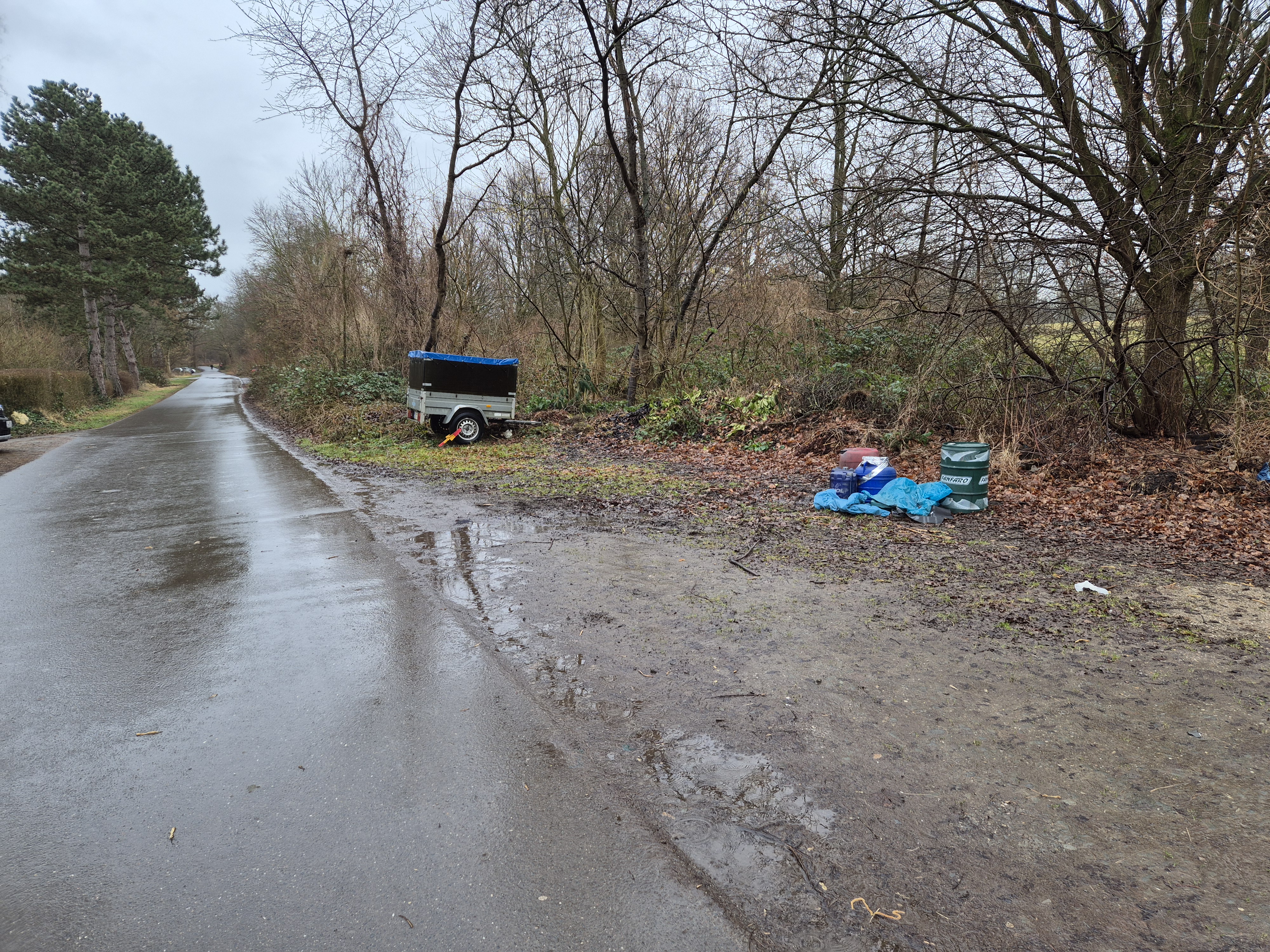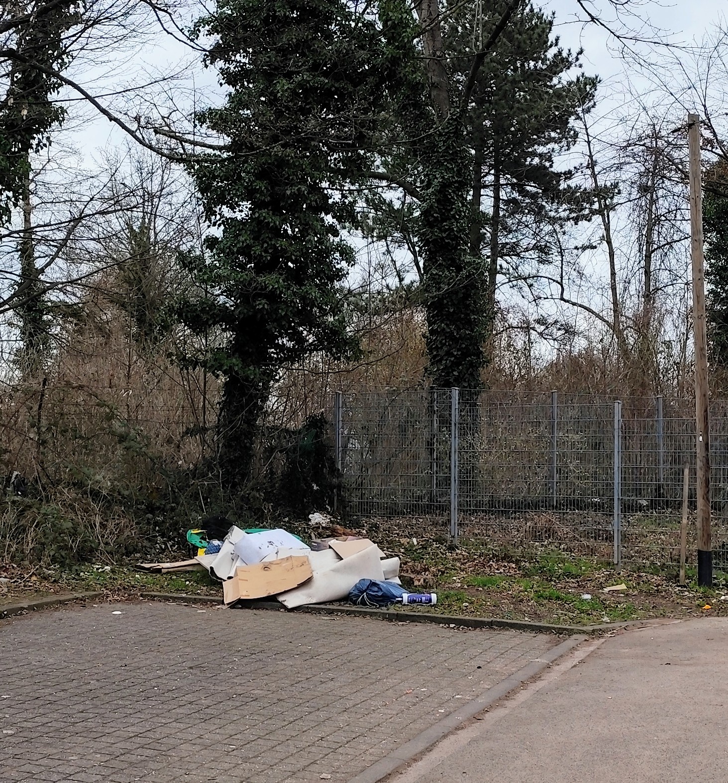 Köln / Cologne, Deutschland | open | Wilder Müll | Mehrere Müllhaufen mit zum Teil scheinbar Chemischen Inhalts, um den Eingang und den Parkplatz zur Sportanlage