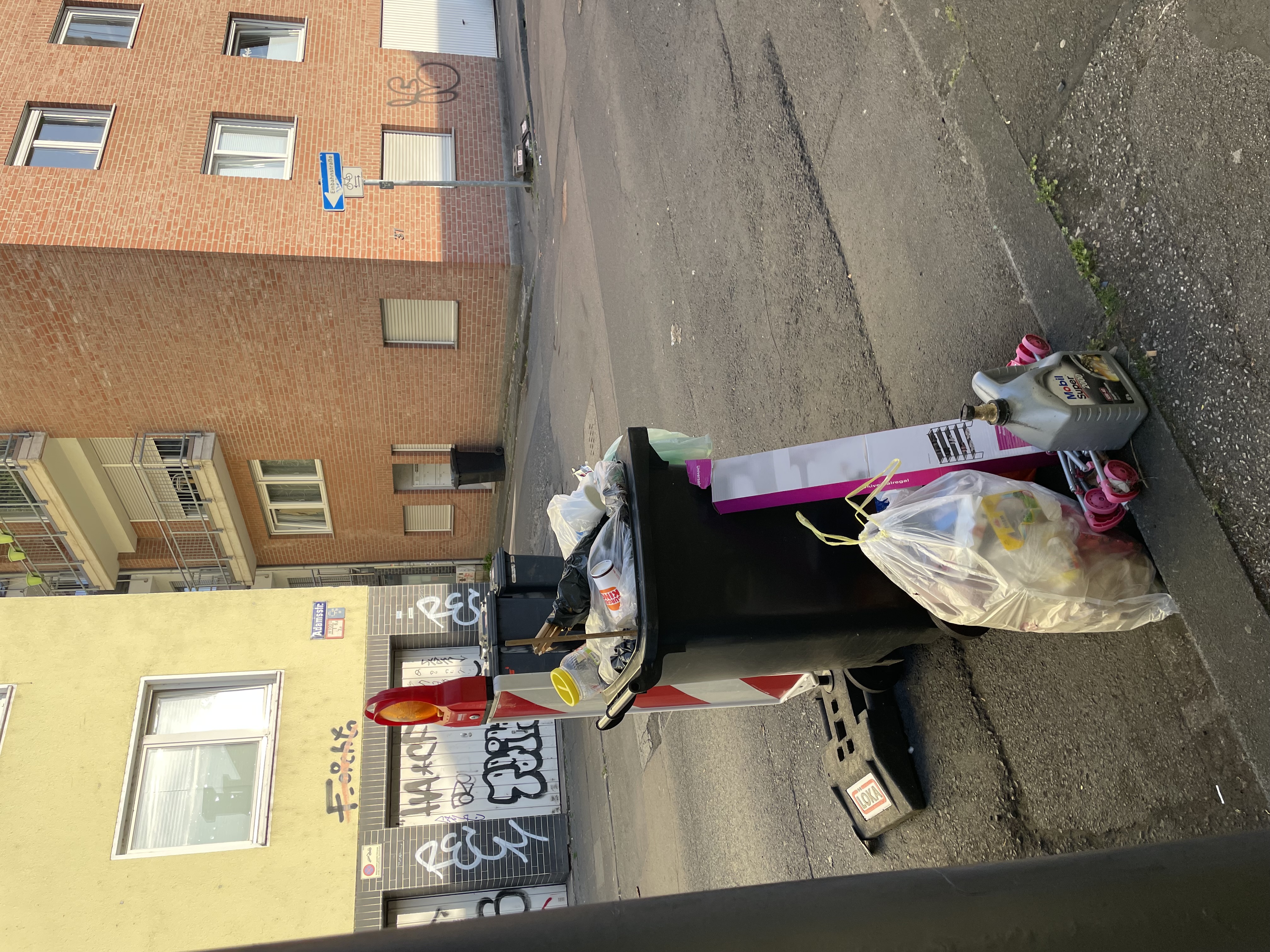 Köln / Cologne, Deutschland | open | Wilder Müll | An der Ecke Adamsstr./ Gymnasiumstr. Befindet sich gegenüber eine ungeleerte Tonne ohne Deckel mit überquellendem Müll vor der Baustelleneinrichtung. Dort kommt täglich mehr Müll hinzu. Vielen Dank!! |  | 5 months ago |