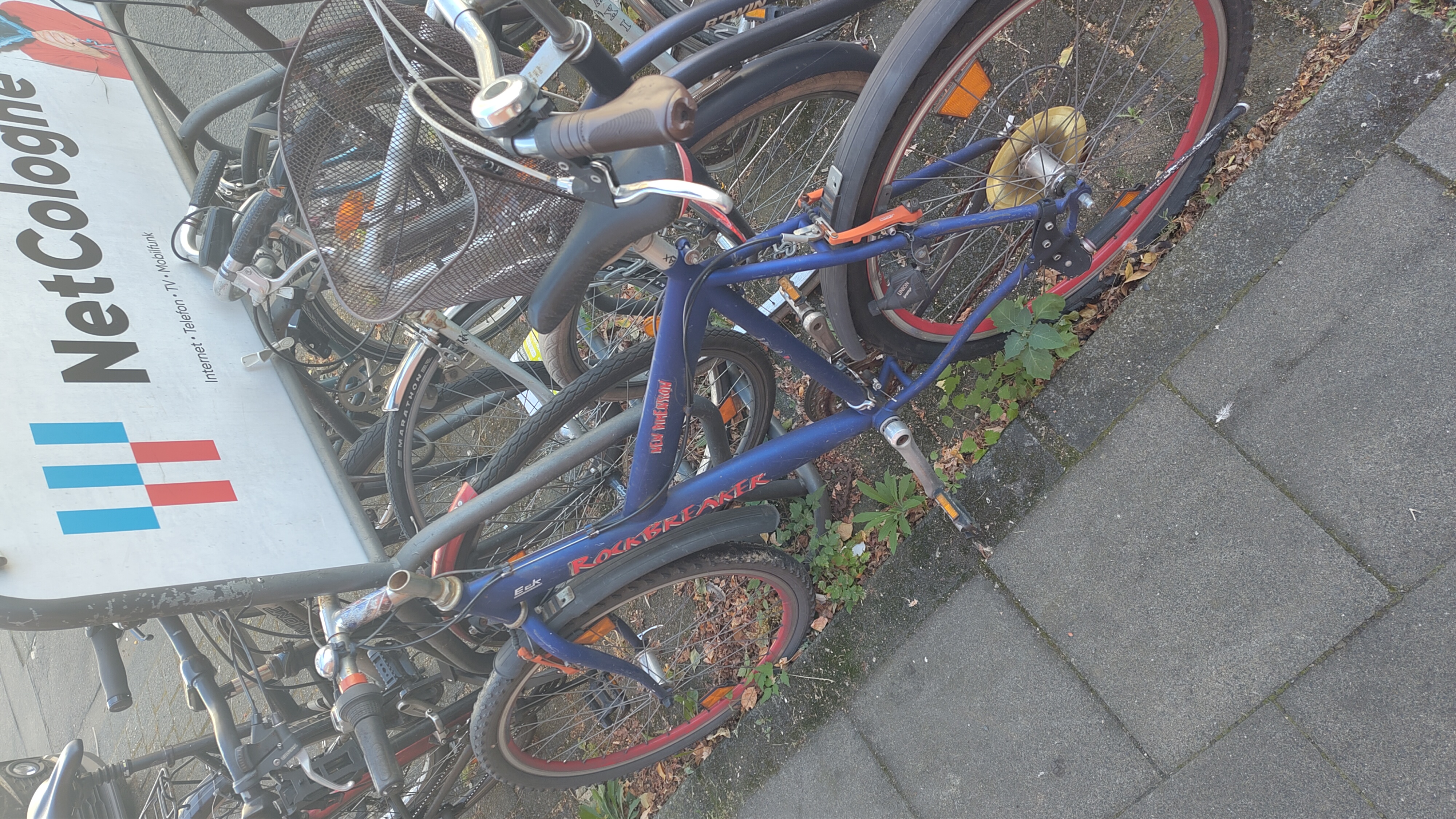 Köln / Cologne, DeutschlandopenSchrottfahrräderFahrradständer mit mehreren Fahrrädern sie seit langem nicht bewegt worden sind. Wirken verlassen, da die Reifen dazu keine Luft haben. about 1 year ago