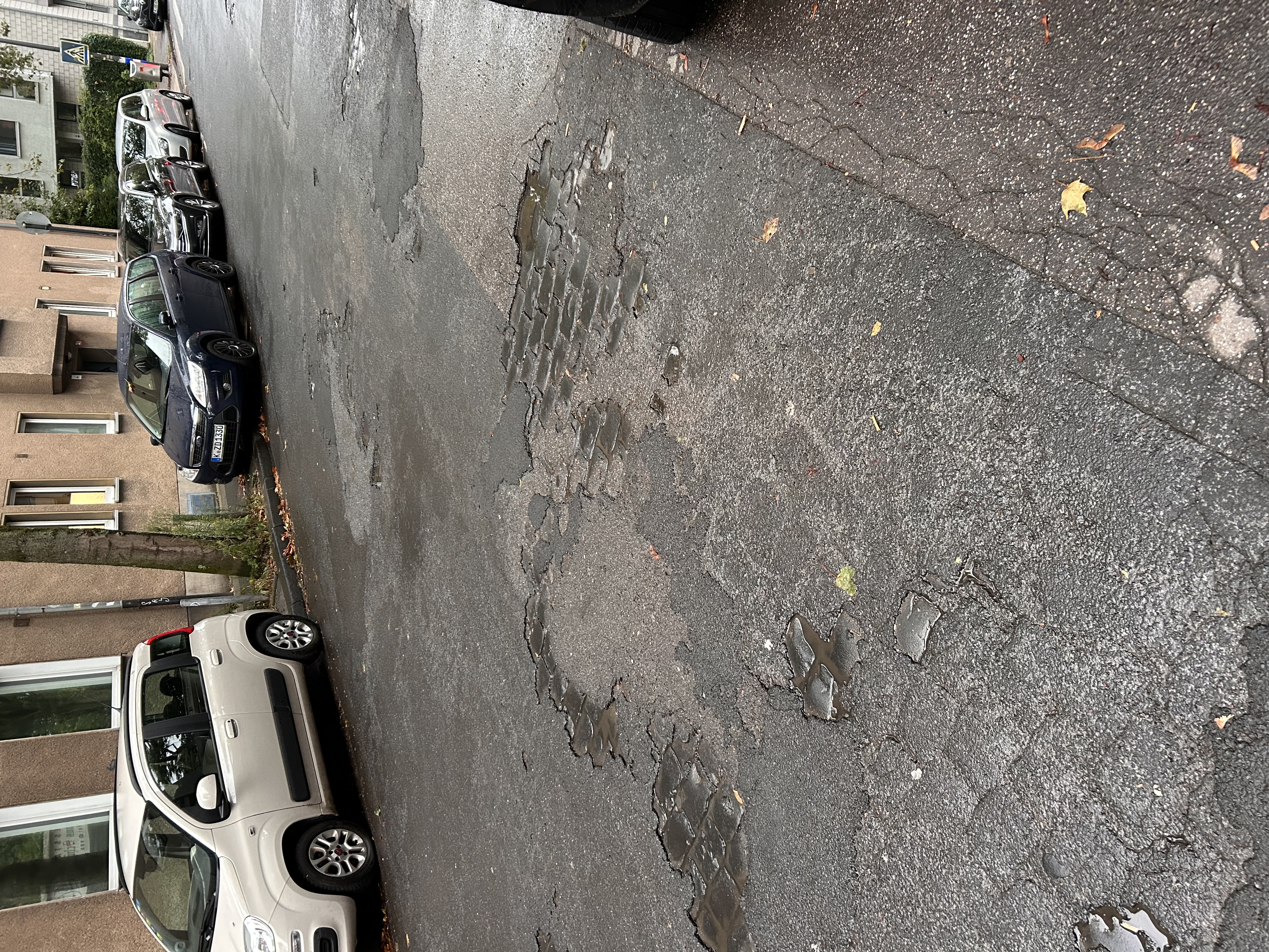 Köln / Cologne, Deutschland | open | Defekte Oberfläche | Die gesamte Takustraße besteht aus unzähligen Schlaglöchern, was insbesondere für Fahrradfahrende eine Zumutung und Gefahr ist. Das Bild zeigt nur einen kleinen Ausschnitt. Durch das ständige Ausweichen besteht vor allem bei höherem Verkehrsaufkommen Lebensgefahr. |  | about 1 year ago |