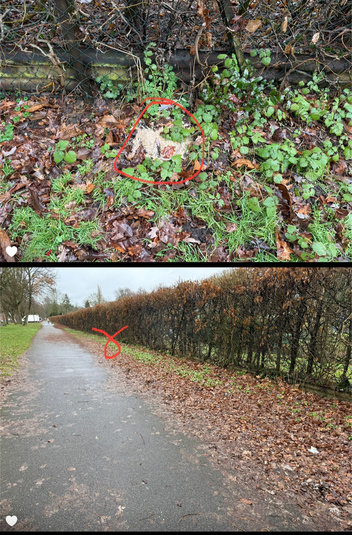 Köln / Cologne, Deutschland | open | Wilder Müll | Beim Gassigehen ist mir eine tote Ratte am Rand der Kleingartenanlage aufgefallen (gegenüber Linder Mauspfad 63). Da auf ihr Streugut liegt, könnte sie vermutlich als Haustier gehalten worden und nun hier entsorgt worden sein. Am leichtesten zu finden: Am Rand der Kleingartenanlage liegt überall Laub. An einer Stelle (weiter rechts vom Tor/Eingang) hingegen ist grün zu sehen. Von Eingang aus kommend liegt die Ratte am Anfang des Grüns. |  | 8 months ago |