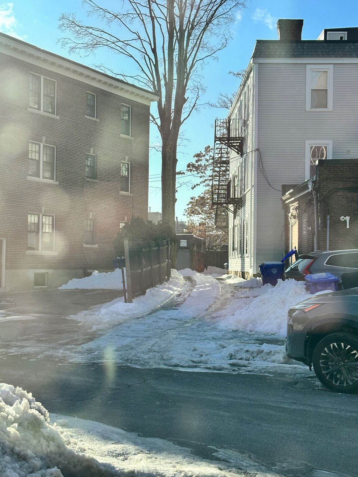 Brookline, MA | open | Unshoveled/Icy Sidewalk | Street/alleyway/driveway is covered in a sheet of ice and was never plowed and is very unsafe - my car skidded multiple times. Area behind Bottega di Capri on the intersection of Linden St and walkway |  | 8 months ago |