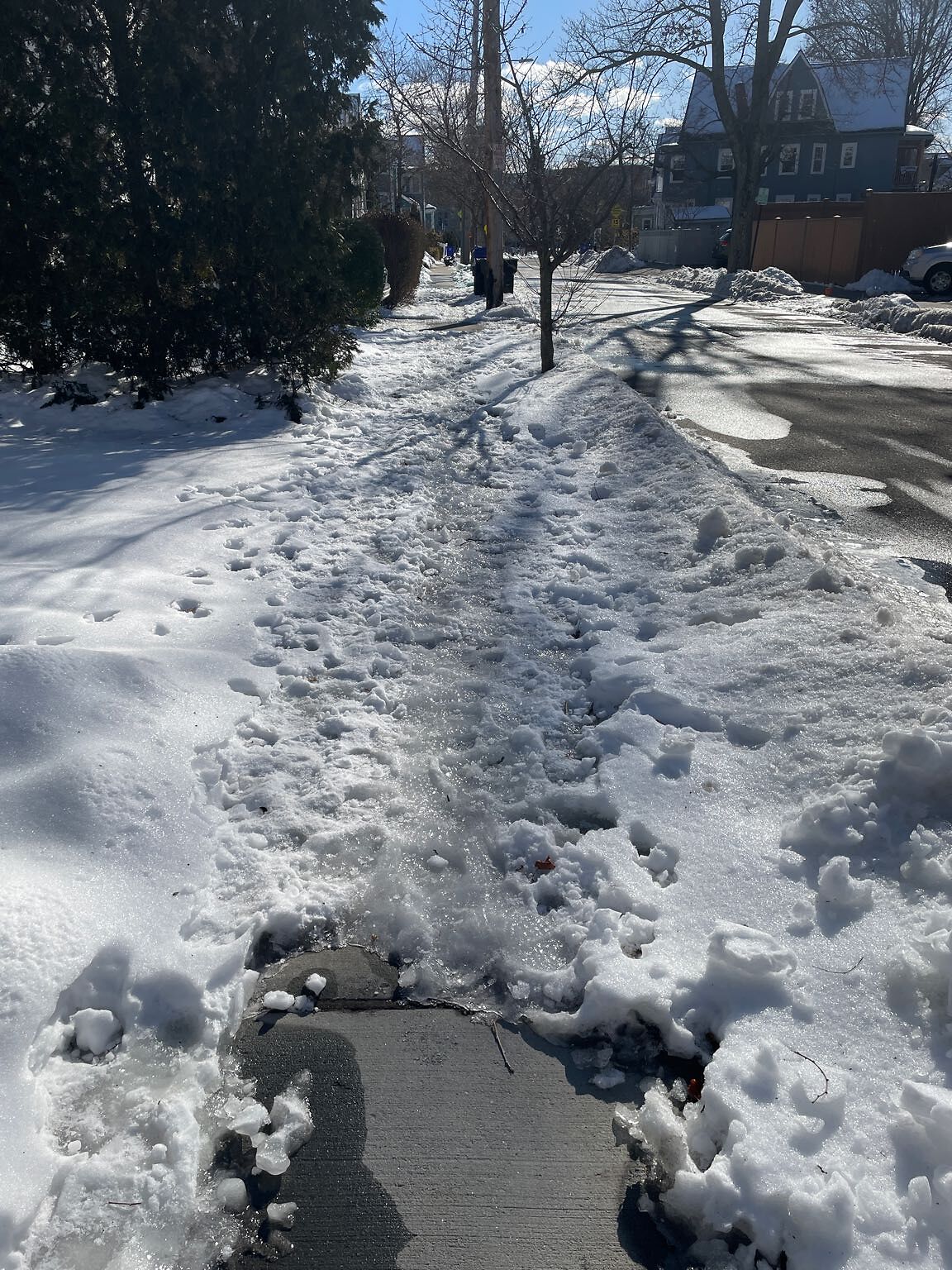 Brookline, MA | open | Unshoveled/Icy Sidewalk | Snow & ice on a completely uncleared sidewalk. |  | 8 months ago |