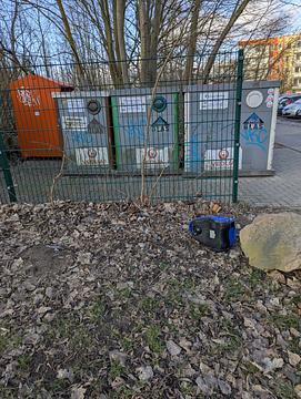 Rostock, Deutschland | in_process | Nebenablagerungen an Recycling-Container | Ein kleiner Bodenstaubsauger liegt beim Recyclingcontainerstellplatz herum! |  | 8 months ago |