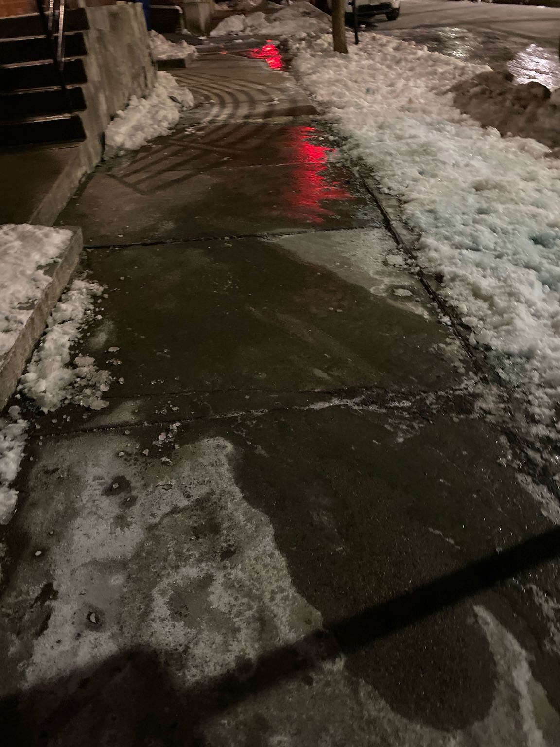 Brookline, MA | open | Unshoveled/Icy Sidewalk | A man walking next to me just slipped on this ice. |  | 8 months ago |