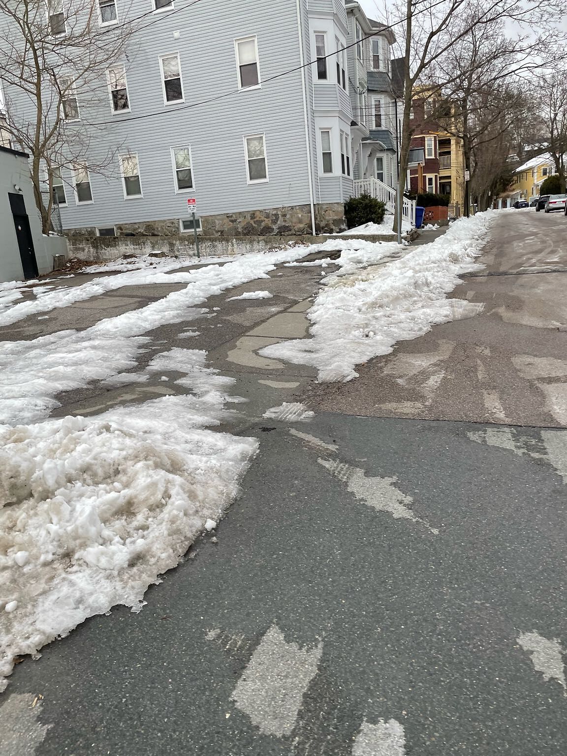 Brookline, MA | open | Unshoveled/Icy Sidewalk | Owner plowed for the cars that have paying owners that are parked here, but not for the people who walk on the sidewalk. Shameful and greedy. |  | 8 months ago |