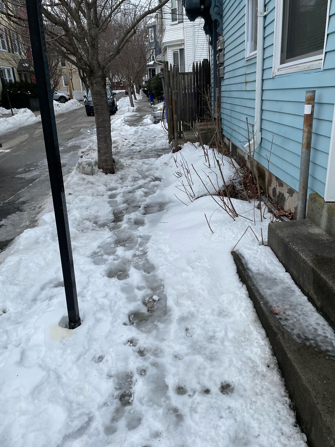 Brookline, MA | open | Unshoveled/Icy Sidewalk | They got their car out, I guess that's enough for them. Don't need to shovel or break up ice for people who walk, of which there are many more. |  | 8 months ago |
