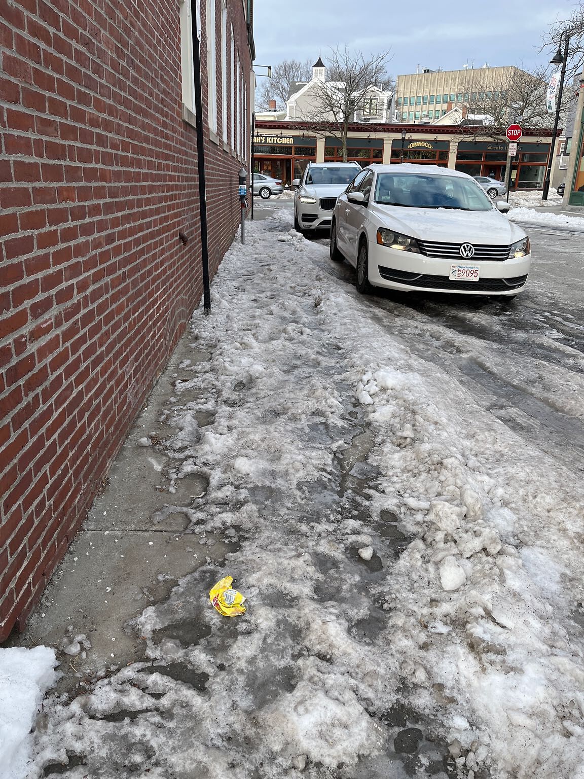 Brookline, MA | open | Unshoveled/Icy Sidewalk | On Aspinwall at 99 Harvard |  | 7 months ago |